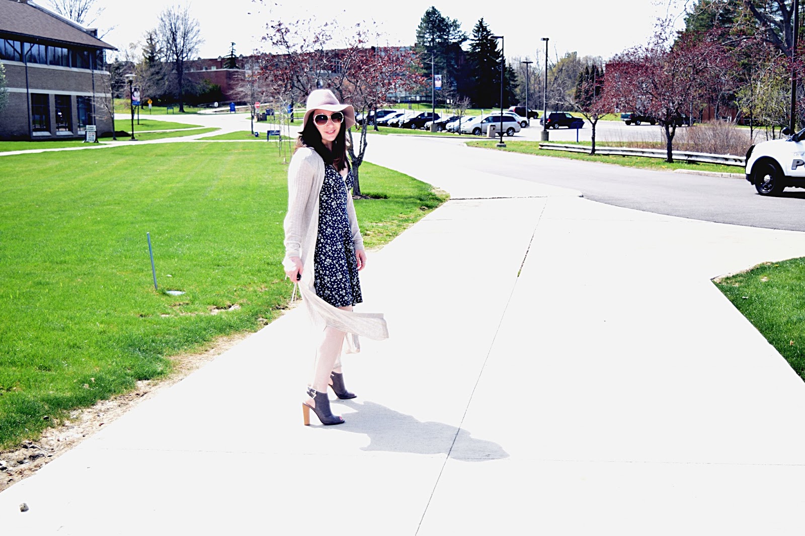 Hat: Nordstrom // Cardigan: Target // Dress: Denim & Supply by Ralph Lauren // Lace bralette: Free People // Bag: Rebecca Minkoff // Booties: Lulu's